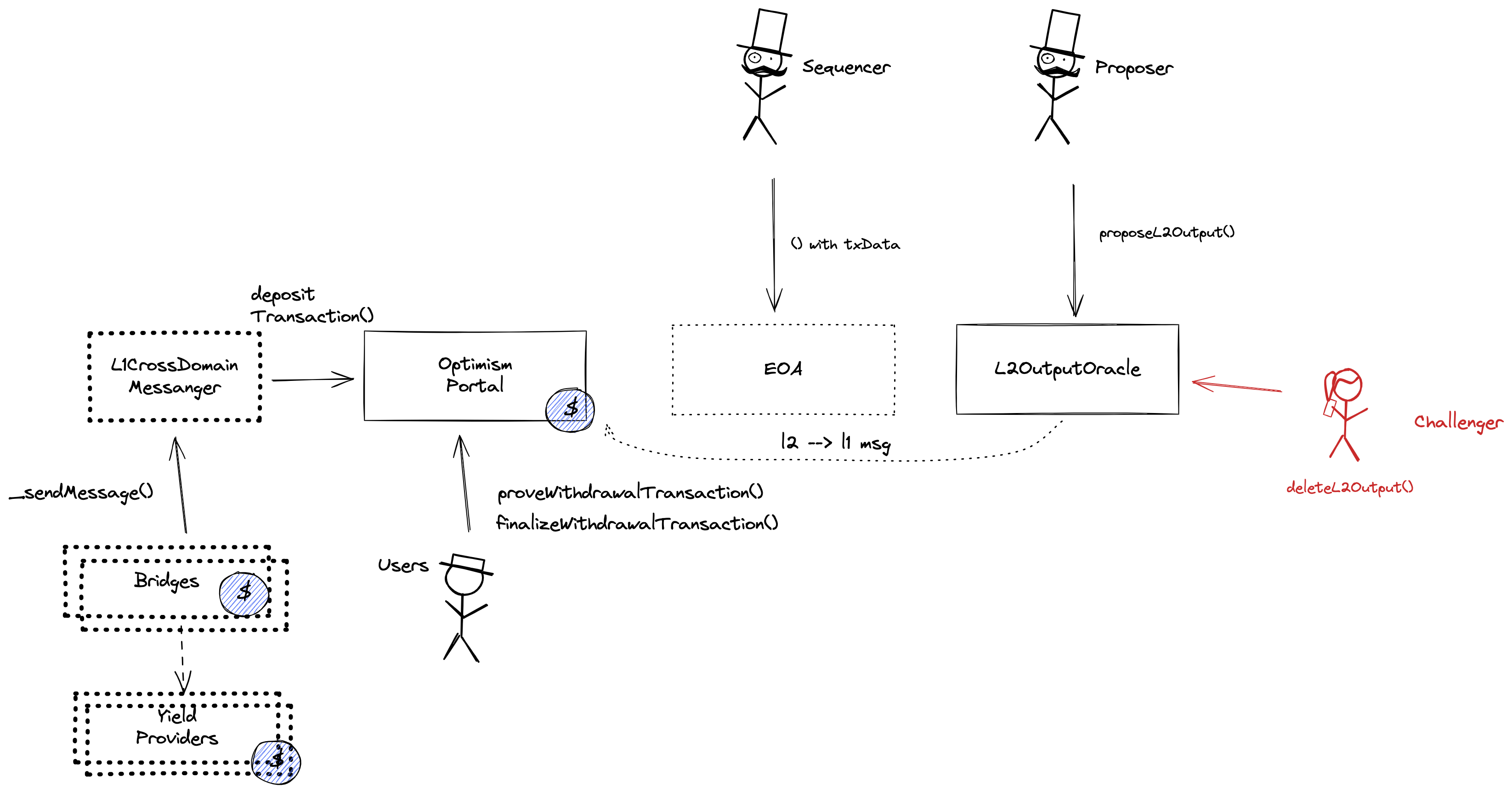 The user initiates the withdrawal by submitting a regular transaction on this chain. When the block containing that transaction is settled the funds become available for withdrawal on L1. The process of block finalization takes a challenge period of 7d to complete. Once funds are added to the withdrawal queue, operator must ensure there is enough liquidity for withdrawals. If not, they need to reclaim tokens from Yield Providers.